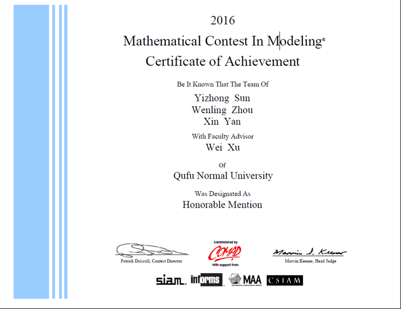 我校学子在美国大学生数学建模竞赛(MCM/ICM)中荣获二等奖