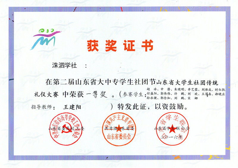 我校洙泗学社获山东省大学生社团传统礼仪大赛一等奖