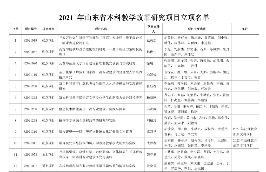 完美体育(中国)官方网站获批19项山东省本科教学改革研究项目