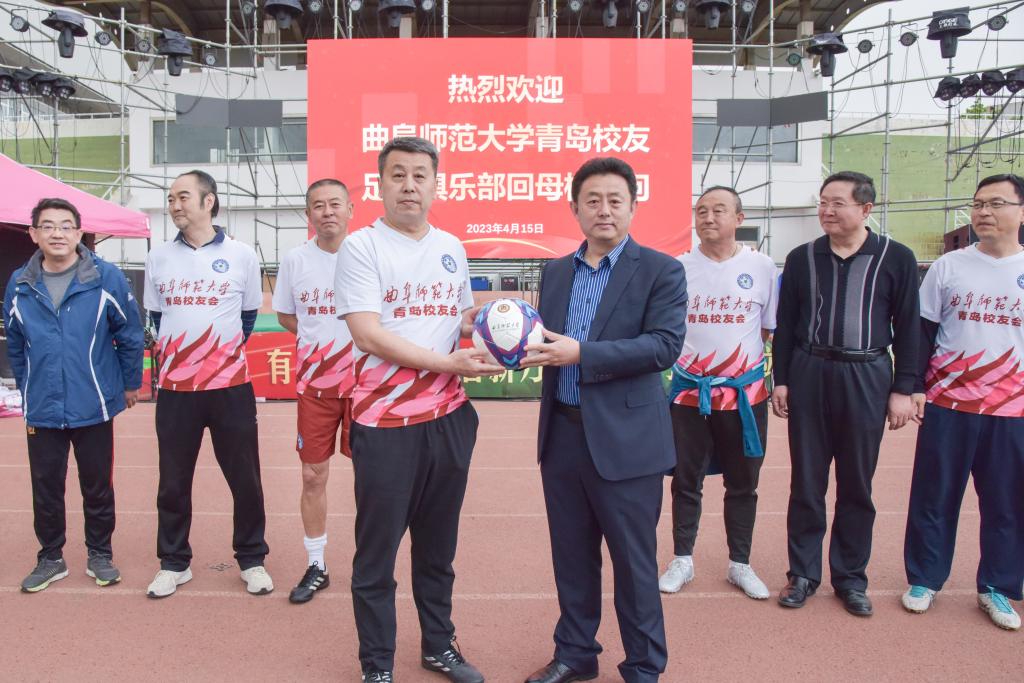 曲阜师大教职工足球队讯 4月15日,曲阜师大青岛校友足球俱乐部27名校友重回母校举办足球友谊赛,学校党委常委、副校长纪洪涛会见了校友并参加足球友谊赛启动仪式。青岛校友足球俱乐部领队、生物系80级校...