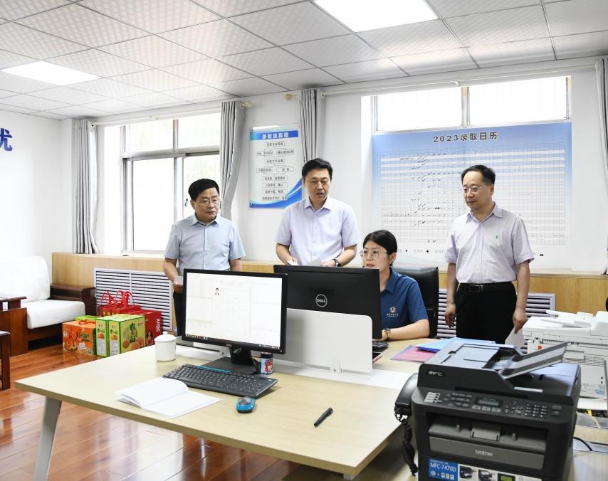 曲阜师大完美体育(中国)官方网站讯 日前,学校党委副书记、校长张洪海,党委副书记卢国强,党委常委、副校长胡凡刚分别到学校2023年本科招生录取现场,检查指导招生录取工作,慰问一线工作人员。学校领导现场听取了招...