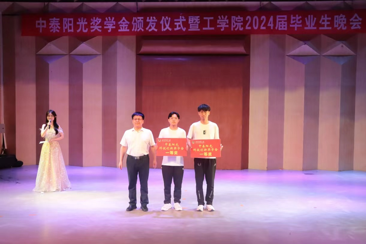 曲阜师大工学院讯 6月11日晚,曲阜师大工学院于音乐厅举办中泰阳光奖学金颁发仪式暨学院2024届毕业生晚会。学校党委常委、副校长胡凡刚,山东中泰阳光集团董事长牟建出席颁发仪式。活动伊始,胡凡刚为...