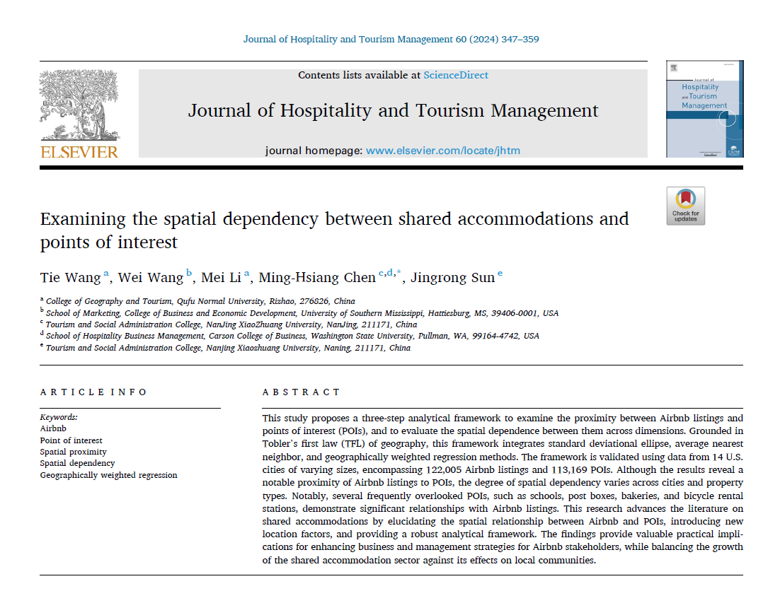 曲阜师大地理与旅游学院讯 近日,完美体育(中国)官方网站地理与旅游学院王铁教授团队与Washington State University和University of Southern Mississippi等高校合作,在国际著名期刊Journal of Hospitality and To...